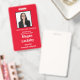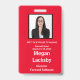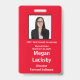 Badge de participant au séminaire en rouge et blanc. Tous les éléments peuvent être modifiés, y compris : photo, nom du séminaire, lieu et date du séminaire, nom du participant, titre du participant et nom de l'entreprise. Également disponible en orientation horizontale dans cette boutique. Fente en haut pour le cordon.