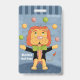 Badge de passage pour le hall de l'école bleu amusant avec un lion jongleur de cirque sur le devant et un motif sur le dos. Parfait pour l'école primaire. Il peut être personnalisé avec le nom de l'enseignant et le type de laissez-passer (bibliothèque, bureau, salle de bain, etc). Choisissez le type de fixation que vous voulez (aucun, clip métallique - comme vu ici -, ou lanière).
