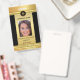 Badge de photo d'identité de conception or et noir chic avec un espace pour votre photo et logo personnalisés. Au dos, vous pouvez ajouter un code-barres ou un code QR personnalisé ainsi que du texte supplémentaire ou supprimer les modèles. Vous pouvez également copier et coller la conception et les photos de l'avant vers l'arrière si vous le souhaitez.