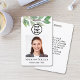 Le badge de sécurité de la carte d'identité de cette employée comporte une photographie et un modèle de logo sur un fond de verdure à l'aquarelle botanique.