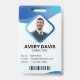 Personnalisez ces badges verticaux avec une photo et le nom d'un employé, ainsi que deux lignes de texte personnalisé supplémentaire pour le numéro d'identification de l'employé, le rôle ou le titre, l'emplacement ou d'autres données clés. Ajoutez votre logo en haut. Champ de texte personnalisé supplémentaire situé au dos pour les informations de retour ou d'autres détails.