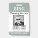 Personnalisez le badge de l'agent de sécurité du ring avec une note de remerciement et une zone photo pour votre porte-bague. Couleurs personnalisées