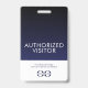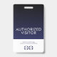 Gardez votre hôpital ou établissement médical sécurisé avec ces badges de visiteur autorisé personnalisables. Le design bleu marine et blanc comporte un logo et un texte personnalisables, avec le message important "La suppression non autorisée du badge est strictement interdite" affiché en bas. Ces badges sont parfaits pour identifier les visiteurs autorisés et s'assurer qu'ils ont la permission d'accéder aux zones restreintes.
