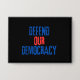 Montrez votre soutien à notre Constitution et à notre démocratie avec ce bouton/épingle élégant "Défendre notre démocratie". Comprend un arrière - plan noir avec "Defend" et "Democracy" imprimé en bleu, avec "Our" imprimé en rouge.