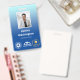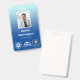 Badge d'employé de bureau vertical avec un design simple sur un dégradé de bleu pâle à bleu ciel. Ajoutez une photo de l'employé avec le nom et la profession. Personnalisez-vous avec trois logos professionnels.