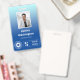 Badge d'employé de bureau vertical avec un design simple sur un dégradé de bleu pâle à bleu ciel. Ajoutez une photo de l'employé avec le nom et la profession. Personnalisez-vous avec deux logos professionnels.