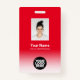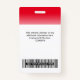 Personnalisez facilement ce badge personnalisé de nom d'employé avec photo, code de barre de numérisation et logo d'entreprise avec un dégradé blanc sur la couleur arrière - plan. Un design d'entreprise simple en rouge et blanc entièrement personnalisable en tailles avant et arrière, sans-serif polices de base et moderne et un look professionnel et clair. Disponible avec cordon, clip métallique ou avec rétractable. Pas de commande minimum.