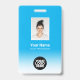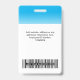 Personnalisez facilement ce badge personnalisé de nom d'employé avec photo, code de barre de numérisation et logo d'entreprise avec un dégradé blanc sur la couleur arrière - plan. Un simple nom d'id de sécurité personnalisé marque le design d'entreprise dans des couleurs vives et vives bleu clair et blanc entièrement personnalisable dans les tailles avant et arrière, sans-serif polices de base et moderne et un look professionnel et clair. Les badges d'identification sont disponibles avec cordon, clip métallique ou avec rétractable. Pas de commande minimum.