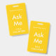 Badges "Demandez-moi" jaune vif pour les bénévoles, les enseignants, les guides, les organisateurs d'événements pour des événements spéciaux, tels que les mariages, les foires artisanales, les salons de la maison et du jardin, les événements caritatifs, les fonctions commerciales et d'entreprise. La couleur de la typographie est ivoire pâle, ce qui donne à ce badge un look moderne. Facile à personnaliser !