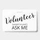 Un badge moderne pour employés, bénévoles et personnel d'événement avec demande de nom. Personnalisez avec votre nom. Type de script tendance. Badge moderne, tendance et simple pour tous usages.