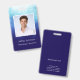 Personnalisez facilement ce badge d'identification de salarié moderne et unique avec un nom, une profession et une photo. Cette étiquette de nom bleu foncé avec un texte blanc simple et clair peut être modifiée pour vos besoins. Ajoutez votre nom et titre et photo sur le devant, au dos, il y a un espace pour plus de texte personnalisé. Vous pouvez ajouter un numéro d'identification, ou l'adresse de la société, le numéro de téléphone, l'adresse e-mail ou l'adresse du site web. J'ai créé ce design unique avec du brouillard de nébuleuse blanc et bleu. Cela a l'air cool sur le fond bleu foncé. Ce serait un excellent badge d'identification photo pour les salariés spécialisés dans les domaines scientifiques et technologiques, l'informatique, la conception web, l'aérospatiale ou le magasin de jeux.