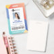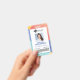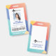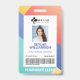 Moderne, coloré, quatre couleurs motif design géométrique avec un arrière - plan motif moderne jaune, corail, bleu et turquoise. Les informations d'identification de badge, le logo, l'ID photo, le numéro d'identification et le code à barres optionnel sont soigneusement conçus dans le cadre blanc du milieu avec le titre du travail affiché en bas du badge. L'envers présente le même design avec une adresse et un logo.