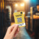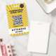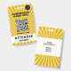 Badge d'événement de la conférence Starburst Yellow avec un espace pour le code QR de votre événement, le logo et la désignation du participant ainsi que les détails du niveau d'accès.