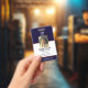 Badge d'ID de sécurité noir avec photo et code QR