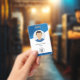 Badge d'ID employé personnalisé de vague bleue