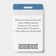 Faites une bonne première impression avec ce badge professionnel et personnalisable d'identification d'employé. Idéal pour des événements spéciaux, des réunions ou un usage quotidien sur le lieu de travail, ce badge durable est fabriqué à partir de plastique en PVC de haute qualité qui ne s'estompera pas ou ne se déchirera pas. Mesurant 2,13 po x 3,38 po, il est parfaitement dimensionné pour les bandeaux, les clips ou les bobines de badge. Personnalisez-le avec votre nom, titre, photo, logo, et même un code à barres ou un numéro d'identification de l'employé. L'arrière offre de l'espace pour des détails supplémentaires ou des instructions de retour.