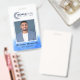 badge d'identification photo moderne avec motif géométrique bleu et code barre. Offre de l'espace pour le nom de l'employé, le titre, le logo de l'entreprise, le numéro d'identification, la date d'expiration et les instructions de retour. Une solution propre et professionnelle pour l'identification de bureau, de technologie ou d'entreprise. Facilement customisé pour les équipes d'entreprise ou distantes.