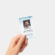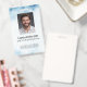 Un badge d'identification d'employé vertical moderne dans un dégradé bleu avec une grande zone photo, le nom modifiable, le titre, le logo de l'entreprise et le code barre. Parfait pour les équipes d'entreprise, de vente au détail ou de bureau. Facile à customiser pour vos besoins professionnels.