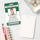 Ce badge photo d'employé personnalisé présente un design à deux tons en vert et blanc avec la photo d'employé encadrée en noir ainsi que du texte personnalisable pour le nom de votre lieu d'emploi, le nom de l'employé, sa profession, son numéro d'identification, l'unité ou l'étage où l'employé travaille, la date de délivrance et la date d'expiration du badge, et (au verso) une adresse pour le retour des badges perdus ainsi qu'un numéro de téléphone. Veuillez consulter d'autres badges d'employés personnalisés ainsi que des cadeaux et des décors personnalisés pour la maison et le bureau dans notre magasin à l'adresse zazzle.com/diydecor.
