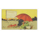 Cette jolie carte postale vintage fait un grand cadeau ! Le couple s'embrasse sous un grand parapluie rouge — tandis que le panneau dans l'arrière - plan dit, "Captures parapluies - Toujours utile - Bonne couverture."
