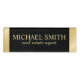 Rendez votre entreprise plus professionnelle avec cette étiquette de nom professionnel. Cette étiquette de nom comporte le nom en or style de police professionnelle serif et le titre en or style de police de script classique sur le noir avec arrière - plan de bordure en or. Parfait pour un agent immobilier, consultant, comptable, gestionnaire, enseignant et de nombreuses autres professions. Veuillez noter : Les détails de la feuille sont simulés dans l'illustration. Il n'y aura pas de métal sur ce produit.