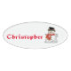Bonhomme de neige avec un casquette noir et un cône de sucrerie dans sa main.