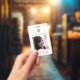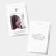 badge d'identification noir et blanc classique avec photo et logo à l'avant, et adresse de retour si perdu à l'arrière du badge. Cet article professionnel comprend également l'emplacement de l'entreprise, le titre de l'emploi et le numéro d'identification de l'employé.