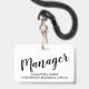 Un badge d'identification simple et élégant pour les managers modernes, avec un titre en typographie script et votre nom et le nom de votre entreprise ou région. Simple, moderne, élégant. Pour le personnel de direction pour les réunions, les événements et les conventions.