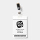 Ce badge de conférence élégant est parfait pour toute entreprise cherchant à donner à son personnel une apparence individualisée avec du texte et des couleurs personnalisés. Le design présente un fond noir, blanc et gris clair qui peut être facilement personnalisé, ainsi que le logo et le code-barres.