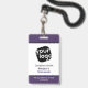 Ce badge de conférence élégant est parfait pour toute entreprise cherchant à donner à son personnel une apparence individualisée avec un texte et des couleurs personnalisés. Le design présente un fond violet, noir et blanc qui peut être facilement personnalisé, aussi !