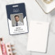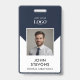 Ce badge d'identification d'employé fournit une solution d'identification moderne et professionnelle pour les stratèges numériques et les professionnels des agences de création. Le design vertical recto-verso présente un espace photo circulaire unique avec un cadre doré raffiné sur un fond à chevrons blanc et une base bleu marine uni. Ce badge garantit que les dirigeants et les membres de l'équipe sont facilement reconnaissables dans les environnements de bureaux de haute technologie et les sièges sociaux d'entreprise.