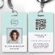 Un logo professionnel de l'entreprise Badge avec photo, nom et titre de l'employé sur le devant avec logo de votre entreprise. Un jeu de couleurs bleu et blanc d'oeuf d'aqua robin cool ajoute un aspect distinctif au badge. Le dos de l'insigne a un modèle pour votre site web de l'entreprise code QR et des informations supplémentaires de l'entreprise comme souhaité. Tout le texte peut être modifié selon vos préférences.