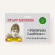 Cette conception nostalgique et classique de badge du personnel comporte des informations personnalisées telles qu'une photo de portrait, un logo d'entreprise/organisation, un nom de membre du personnel et un nom de rôle. Un badge comme celui-ci pourrait être utilisé pour identifier quelqu'un comme membre du personnel d'une entreprise, d'une entreprise ou d'une organisation. [~Z0000450]