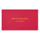 Nom et information de profession en couleurs jaunes dorées sur un arrière - plan rouge cerise de qualité supérieure.