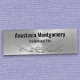 Cette étiquette de nom magnétique professionnelle comporte un nom et un titre en noir sur un arrière - plan métallique argenté. En dessous du texte se trouve le travail de défilement argenté. Personnalisez les champs de texte ou cliquez sur personnaliser pour sélectionner un style de police, une taille et une couleur que vous préférez.