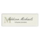 Neutre, étiquette de nom élégant avec votre initiale en or pâle contre blanc crémeux sous votre nom et titre en marron si foncé il est presque noir.