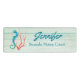 L'étiquette orientée de nom des employés de plage de bord de la mer faite en vert d'aqua a lavé sembler les ardoises en bois, avec des graphiques d'un hippocampe et d'un corail colorés, de l'aile gauche. Personnalisez le texte bleu d'aqua pour adapter à vos besoins d'affaires.