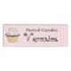 Étiquette orientée de nom des employés de boulangerie mignonne faite à un arrière-plan rayé rose et blanc, avec des graphiques d'un petit gâteau glacé assez rose. Deux secteurs de texte noir sont prêts à personnaliser pour vos besoins d'affaires.