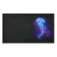 Grande méduse bleue, artistiquement dessinée, brillante, brillante, avec de longues tentacules sur arrière - plan noir avec bioluminescence violette. Méduse brillante.
