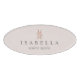 Chic nametag présente votre nom et titre ou compagnie en lettrage gris classique sur un arrière - plan rose pâle camée sur un logo floral ciseaux en feuille d'or faux rose. Un beau choix pour les coiffeurs ou les employés de salon.