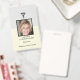 Badge d'identification médicale. Jaune et gris. Photo, Nom, Nom de la clinique, poste.