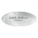 A simple, minimalist name tag design with a silver, pearl effect background. The black typography can be easily customized with your name and profession.
