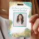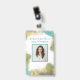 Badge d'identification professionnel moderne aquarelle liquide sarcelle et or. Design professionnel élégant de style calligraphie à main levée à l'encre alcoolique. Parfait pour les artistes maquilleurs, les coiffeurs, les cosmétologues, et plus encore !