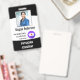 Personnalisez ces badges verticaux pour le personnel médical avec une photo et le nom de l'employé, ainsi que plusieurs champs de texte personnalisés pour le nom de l'hôpital ou de l'établissement de santé, l'unité ou l'étage, l'abréviation du titre, le numéro d'identification de l'employé ou la date de validité, ainsi que le logo du centre médical. Le titre ou le rôle apparaît en bas en lettres blanches grasses pour une identification facile. Personnalisez avec un code-barres au verso si nécessaire, ainsi que des informations de retour ou d'autres détails.