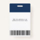 Créez un badge de nom d'employé personnalisé avec une photo personnalisée, un code à barres numérisable et le logo de l'entreprise. Ce design élégant et professionnel, disponible en bleu marine et blanc, est entièrement personnalisable de part et d'autre. Choisissez parmi une variété de polices sans-serif modernes pour un aspect propre et contemporain. Le badge est disponible avec des options pour un cordon, un clip métallique ou une bobine rétractable. De plus, il n'y a pas d'exigence minimale de commande