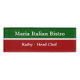 Le nom italien des employés de restaurant étiquette dans les couleurs du drapeau italien avec l'espace pour le nom de votre établissement et l'espace pour un membre du personnel tel que le chef, le directeur, ou la réception de SA.