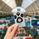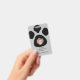 Badge, pour une clinique vétérinaire. . Fond d'empreinte de patte noir et gris. Photo, nom, nom de la clinique, poste. Mignon. N'importe quelle photo carrée conviendra au badge et deviendra circulaire.