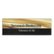 This professional magnetic back name tag features a name in black on a luxurious gold ribbon background and below the title is in white centered over a black background. Personalize the text fields or edit using the design tool to select a font style, size, and color you prefer. This is available in three styles.
