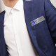 Balise de nom d'employé à l'apparence professionnelle faite en aluminium brossé couleur argent, avec espace, sur le côté gauche pour le logo de votre entreprise. Deux zones de texte noir sont prêtes à être personnalisées, pour vos besoins professionnels.