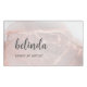 This luxury name tag features rose gold glitter elements with pink blush marble ink texture. Your name in a big handwritten script. Perfect for any feminine business such as makeup, beauty, and fashion boutique.